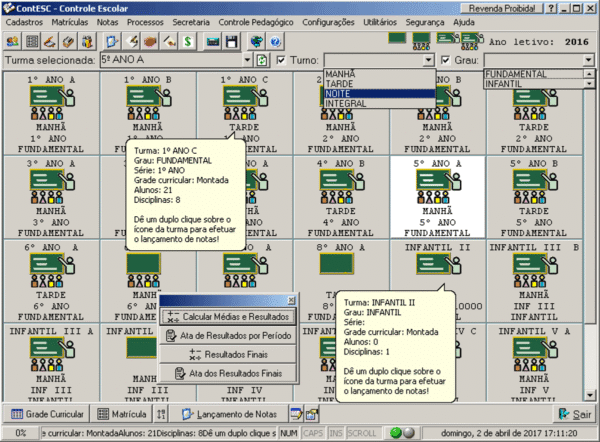 – Controle de matrículas com mudanças de turmas e rematrícula.